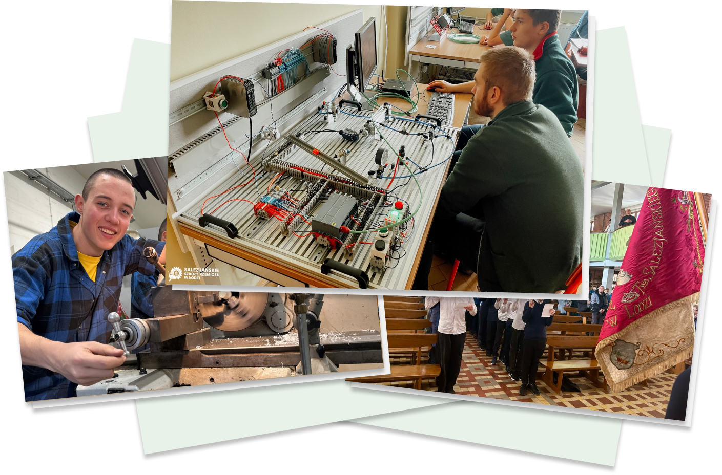 Salezjańskie Szkoły Rzemiosłw Łodzi Salezjańskie Szkoły Rzemiosł w Łodzi ,,Wychowywać dobrych chrześcijan i uczciwych obywateli’’ św. Jan Bosko Zobacz więcej Nowoczesne technologie Profesjonalni partnerzy Tradycja wychowania Jesteśmy Zespołem Salezjańskie Szkoły Rzemiosł, prowadzone przez Towarzystwo Salezjańskie, są zespołem publicznych placówek oświatowych, w skład których wchodzą: Technikum Nowoczesność i tradycja, profesjonalne pracownie zawodowe, praktyki w kraju i za granicą Kierunki kształcenia: technik mechatronik, technik elektromobilności, technik informatyk o profilu cyberbezpieczeństwo, technik informatyk o profilu sztuczna inteligencja 5 lat nauki Dwa egzaminy zawodowe + matura Technikum Nowoczesność i tradycja, profesjonalne pracownie zawodowe, praktyki w kraju i za granicą Kierunki kształcenia: technik mechatronik, technik elektromobilności, technik informatyk o profilu cyberbezpieczeństwo, technik informatyk o profilu sztuczna inteligencja 5 lat nauki Dwa egzaminy zawodowe + matura Szkoła Branżowa I stopnia Kształcenie w zawodach przyszłości, współpraca z najlepszymi firmami w branży eksploatacji i utrzymania kolejowych środków transportu Kierunek kształcenia: mechatronik 3 lata nauki Egzamin zawodowy nadający kwalifikacje zawodowe Szkoła Branżowa I stopnia Kształcenie w zawodach przyszłości, współpraca z najlepszymi firmami w branży eksploatacji i utrzymania kolejowych środków transportu Kierunek kształcenia: mechatronik 3 lata nauki Egzamin zawodowy nadający kwalifikacje zawodowe Szkoła Branżowa II stopnia Kontynuacja kształcenia po ukończeniu szkoły branżowej I st. z możliwością uzyskania tytułu technika i matury Kierunki kształcenia: technik mechatronik, technik mechanik 2 lata nauki Drugi egzamin zawodowy nadający tytuł technika oraz możliwość podejścia do matury Szkoła Branżowa II stopnia Kształcenie w zawodach przyszłości, współpraca z najlepszymi firmami w branży eksploatacji i utrzymania kolejowych środków transportu Kierunek kształcenia: technik mechatronik, technik mechanik 2 lata nauki Drugi egzamin zawodowy nadający tytuł technika oraz możliwość podejścia do matury Więcej o szkołach Branżowe Centrum Umiejętności Centrum oferuje specjalistyczne kursy dla młodzieży, dorosłych oraz nauczycieli, umożliwiając zdobycie zdobycie wiedzy i praktycznych umiejętności Kursy z zakresu mechatroniki w dziedzinie eksploatacji i utrzymania kolejowych środków transportu 15 i 30 godzinne kursy umiejętności Branżowy Certyfikat Umiejętości Przejdź do strony BCU Branżowe Centrum Umiejętności Centrum oferuje specjalistyczne kursy dlamłodzieży, dorosłych i nauczycieli, umożliwiając zdobycie wiedzy i praktycznych umiejętności Kursy z zakresu mechatroniki w dziedzinie eksploatacji i utrzymania kolejowych środków transportu 15 i 30 godzinne kursy umiejętności Branżowy Certyfikat Umiejętności Przejdź do strony BCU Dlaczego my? Wykwalifikowana kadra Szkoła zatrudnia najlepszych nauczycieli zawodu i przedmiotów ogólnokształcących Położenie w centrum Szkoła mieści się w centrum Łodzi przy ulicy Wodnej 34; zajęcia zawodowe odbywają się w budynku C3 Politechniki Łódzkiej Dobre wyposażenie Szkoła posiada dobrze wyposażone pracownie zawodowe oraz własne stanowiska egzaminacyjne Praktyki zawodowe Szkoła organizuje praktyki zawodowe dla uczniów w Polsce i za granicą Nieodpłatna nauka Salezjańskie Szkoły Rzemiosł są szkołami nieodpłatnymi o statusie szkół publicznych Bursa Możliwe jest zakwaterowanie uczniów w Bursie Salezjańskiej mieszczącej się w obiektach Szkoły Nasi partnerzy Dołącz do nas! Świat potrzebuje nowych kompetentnych fachowców w dziedzinach technicznych. Dołącz do nas i zostań jednym z nich! Rekrutacja i Dni otwarte Salezjanie - Kim jesteśmy?